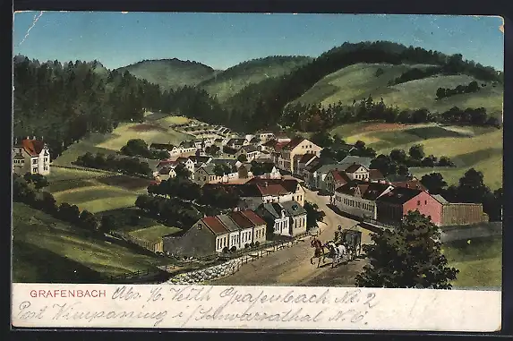 AK Grafenbach /N.-Oe., Ortsansicht mit Umgebung, Kutsche