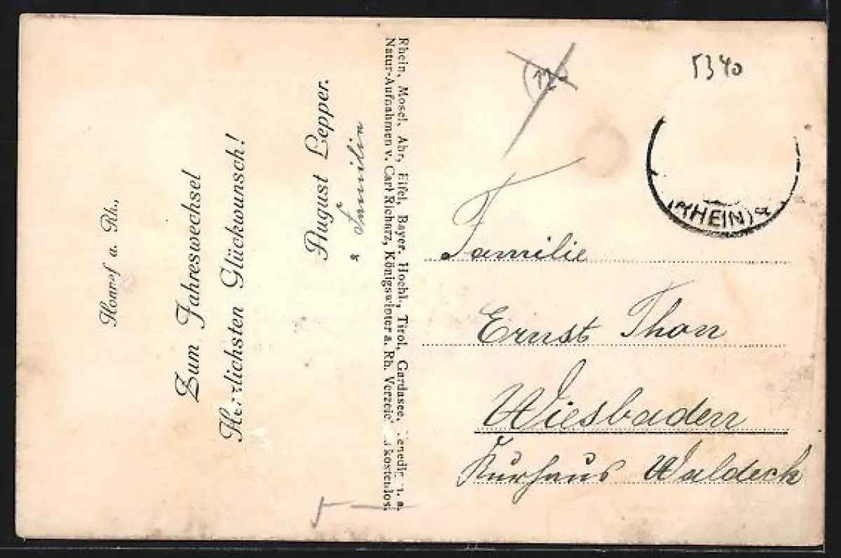 alte Ansichtskarte, gelaufen, Briefmarke entfernt, rückseitig Oberflächenschaden, sonst guter Zustand