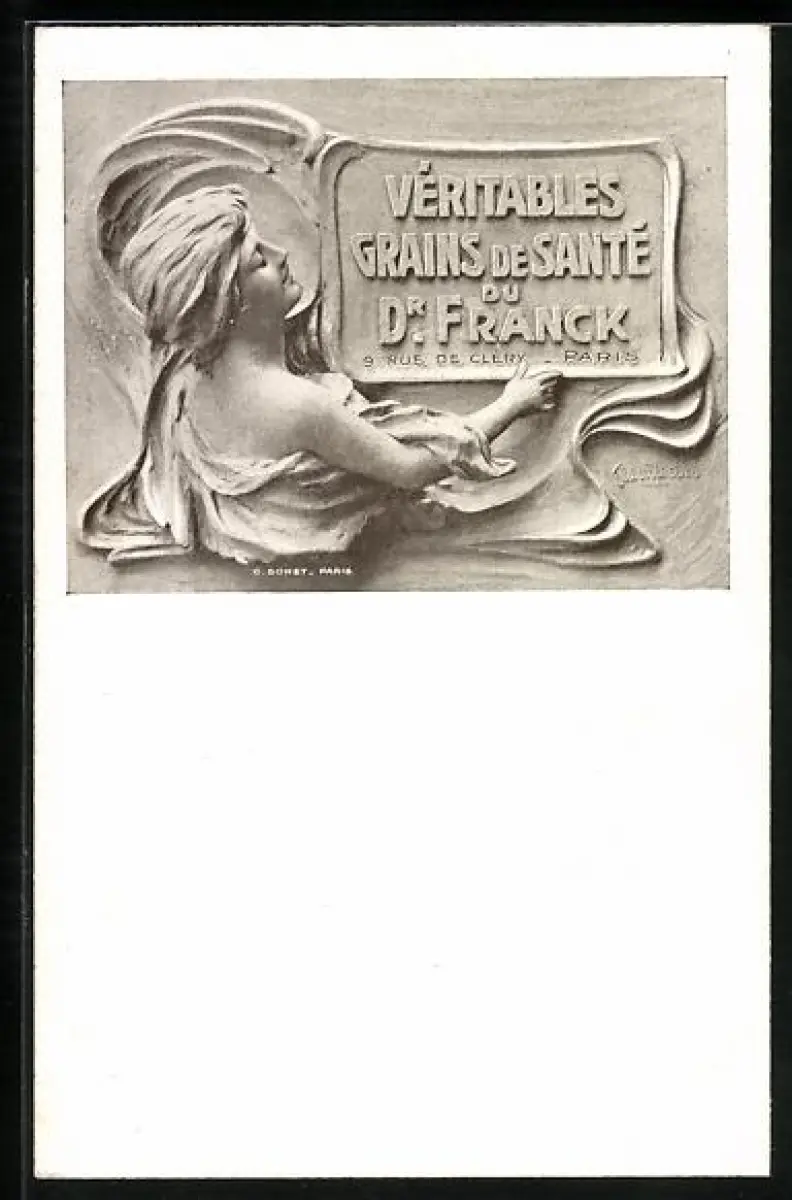 AK Grains de Santé du Docteur Franck, Reklame, Frau hält Werbeschild