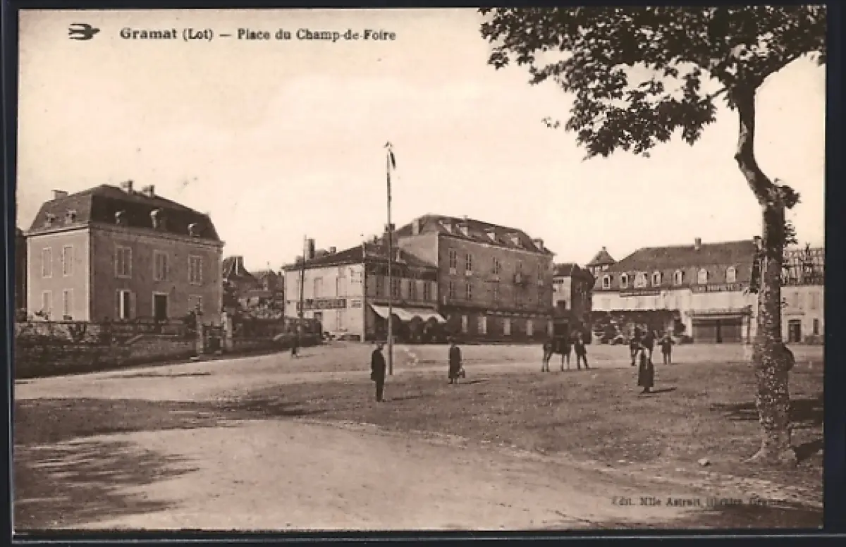 AK Gramat /Lot, Place du Champ-de-Foire avec passants et bâtiments historiques