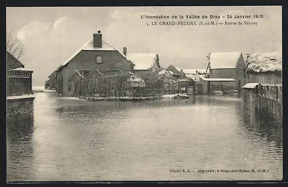 AK Grand-Peugny, Route de Neuvry, L`Inondation de la Vallée de Bray - 24 Janvier 1910