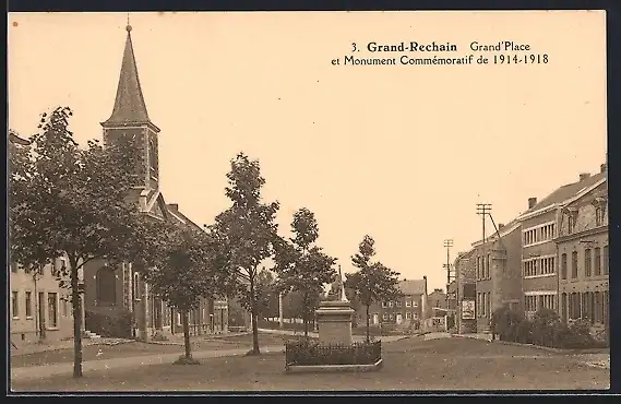 AK Grand-Rechain, Grand`Place et Monument Commémoratif de 1914-1918