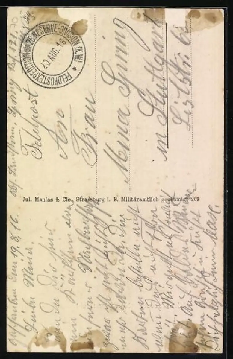 gelaufen 1916, rückseitig Klebe- und Papierreste, guter Zustand
