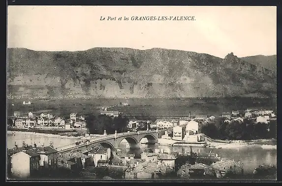 AK Granges-lès-Valence, Le port et le pont avec vue sur les montagnes en arrière-plan