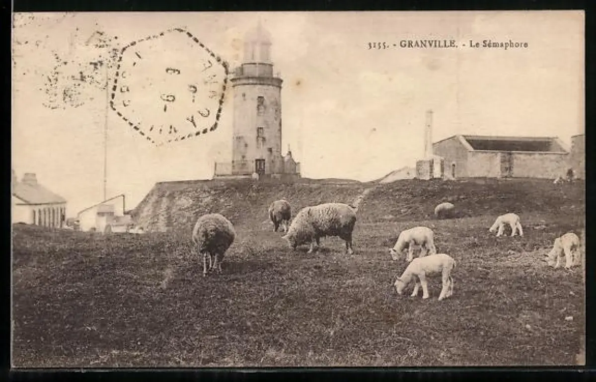 AK Granville, Le Semaphore, Leuchtturm, Schafe