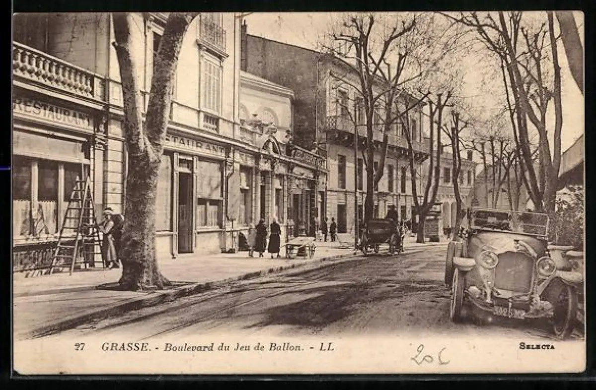 AK Grasse, Boulevard du Jeu de Ballon avec voitures et passants