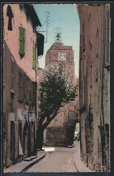 AK Grasse, Rue étroite avec vue sur la tour de l`horloge