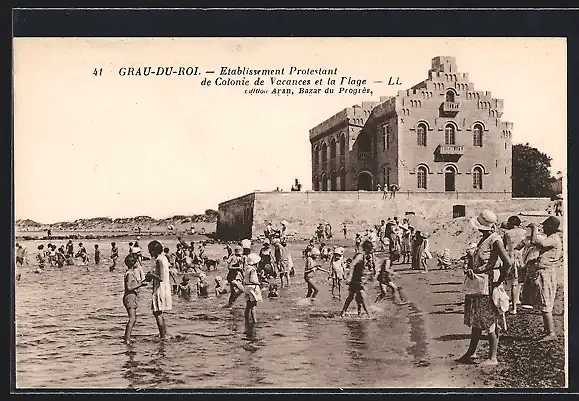 AK Grau-Du-Roi, Etablissement Protestant de Colonie de Vacances et la Plage