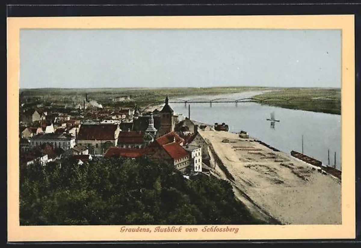 AK Graudenz, Ausblick vom Schlossberg mit Weichselbrücke