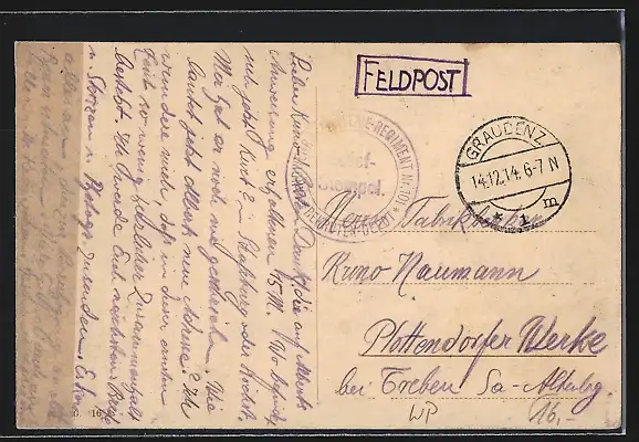 alte Ansichtskarte, gelaufen 1914, rückseitig Klebe- und Papierreste, guter Zustand