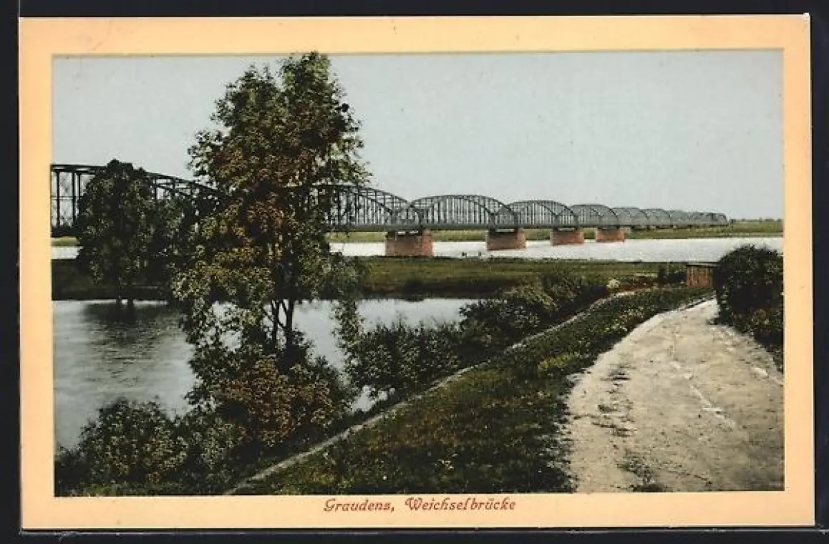 AK Graudenz / Grudziadz, Blick auf die Weichselbrücke