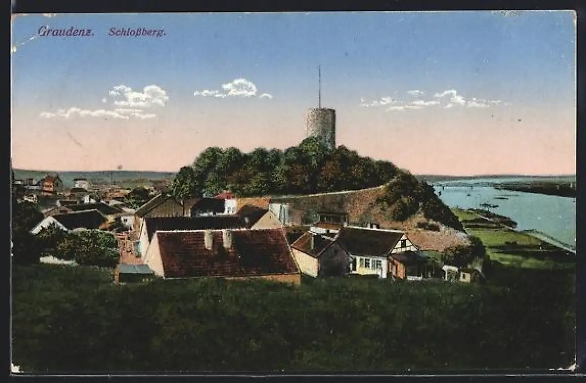 AK Graudenz, Schlossberg und Weichselbrücke im Hintergrund