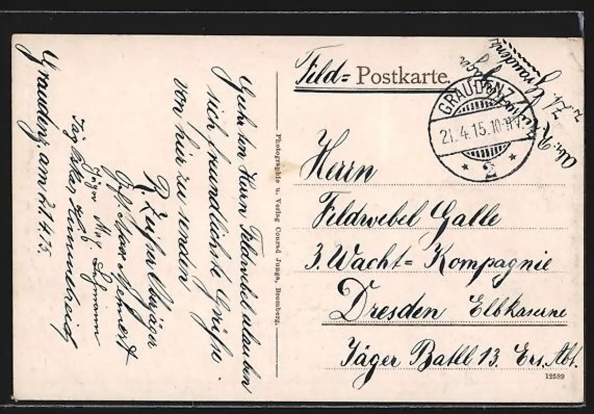 alte Ansichtskarte, gelaufen 1915 als Feldpost, Stempelspur, Eckknick links oben, guter Zustand
