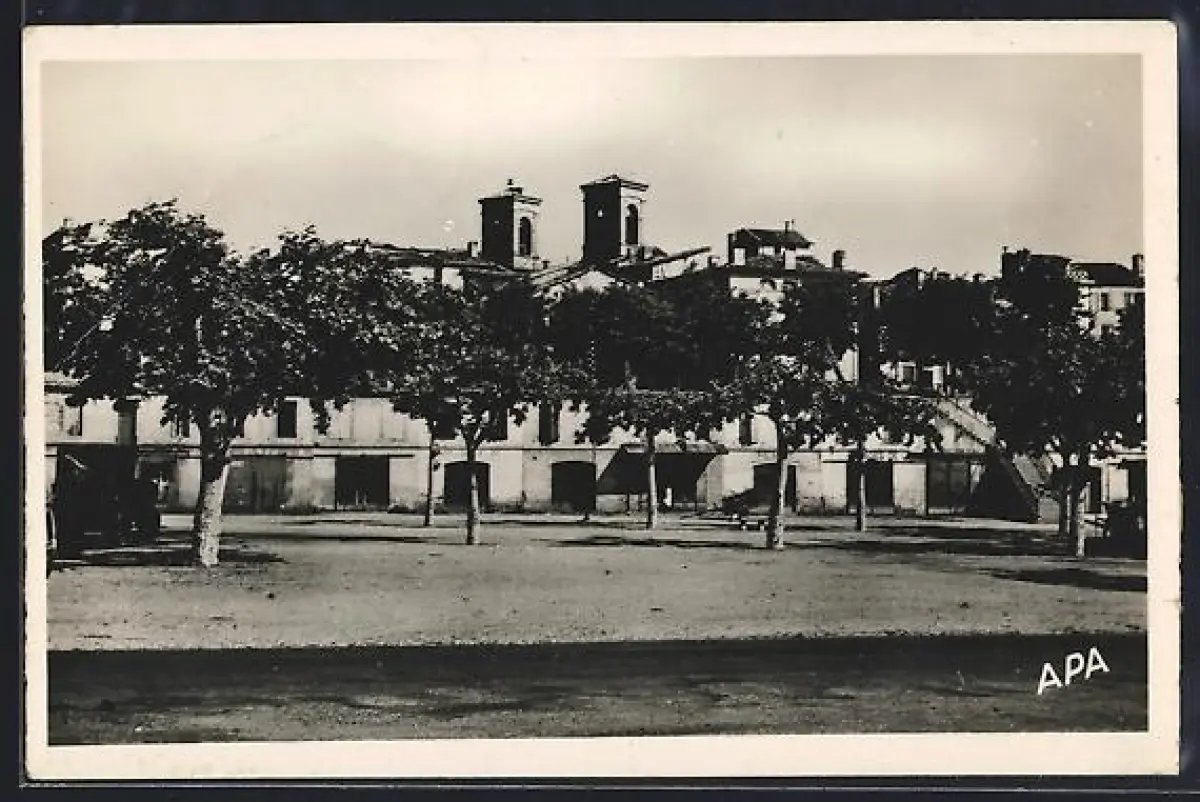 AK Graulhet /Tarn, Place du Jourdain avec vue sur les bâtiments et arbres en avant-plan