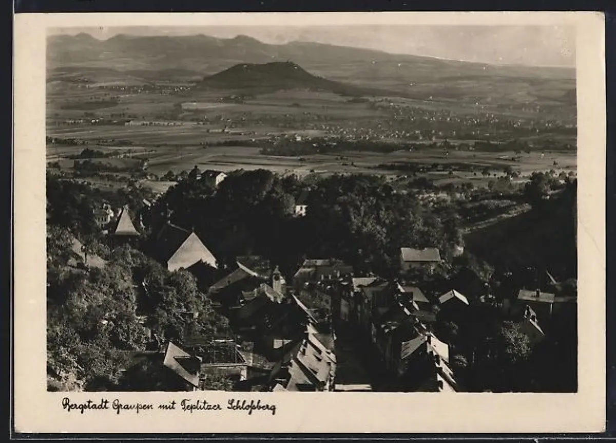 AK Graupen, Panorama mit Teplitzer Schlossberg
