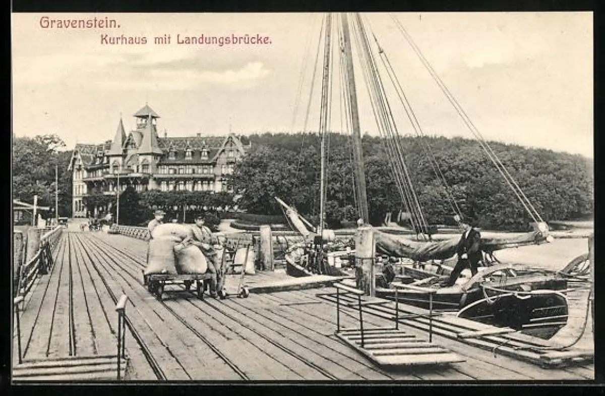 AK Gravenstein, Kurhaus mit Landungsbrücke