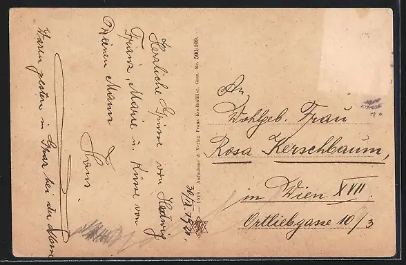 alte Ansichtskarte, gelaufen, Briefmarke entfernt, rückseitig Oberflächenschaden, Bugspur oben li., guter Zustand