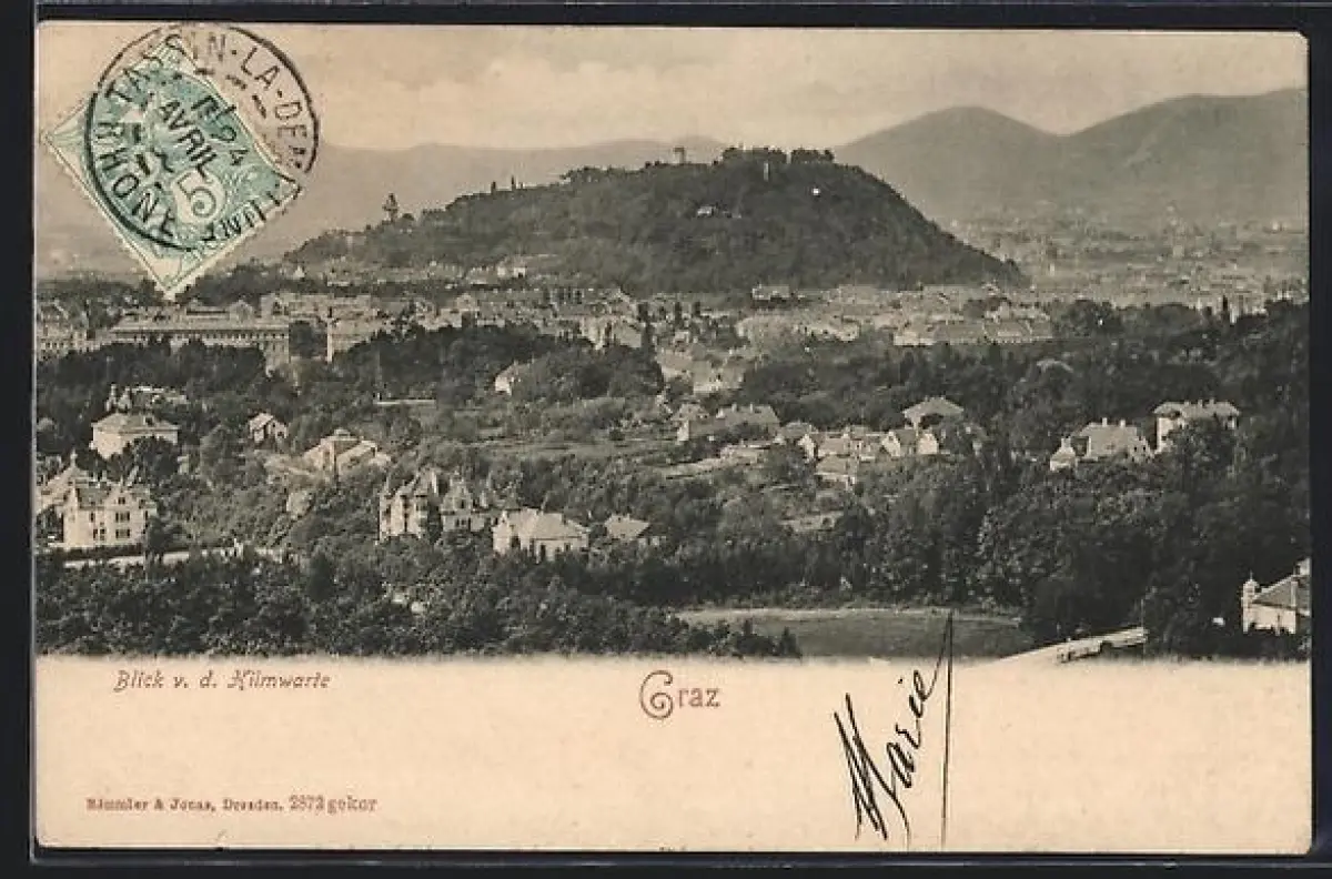 AK Graz, Blick von der Hilmwarte auf den Ort