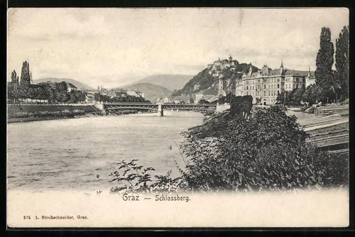 AK Graz, Brückenpanorama mit Schlossberg