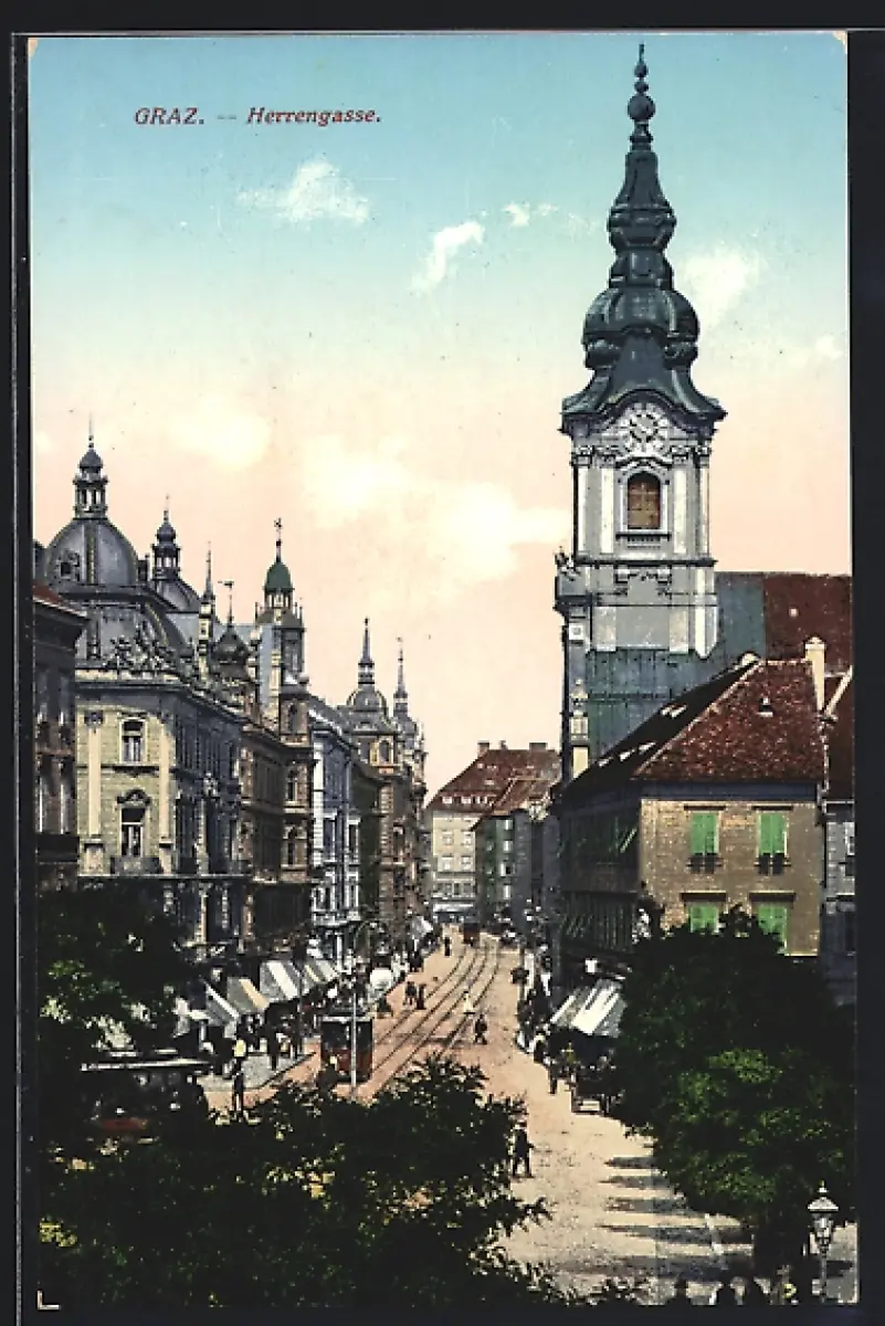 AK Graz, Herrengasse mit Strassenbahn