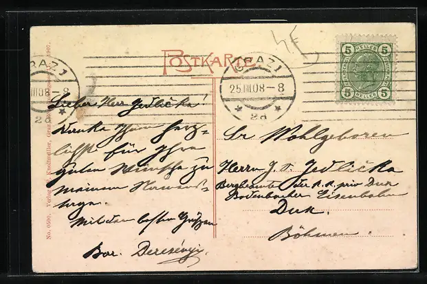 gelaufen 1908, Eckknick rechts unten, guter Zustand