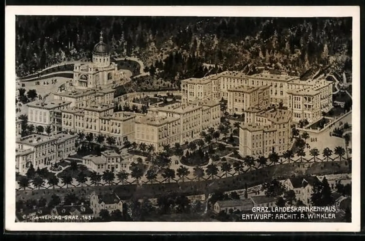 AK Graz, Landeskrankenhaus aus der Vogelschau
