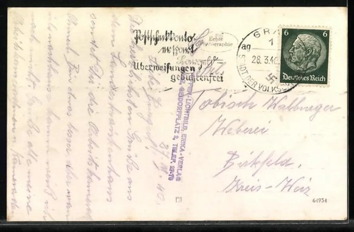 alte Ansichtskarte, gelaufen 1940, guter Zustand
