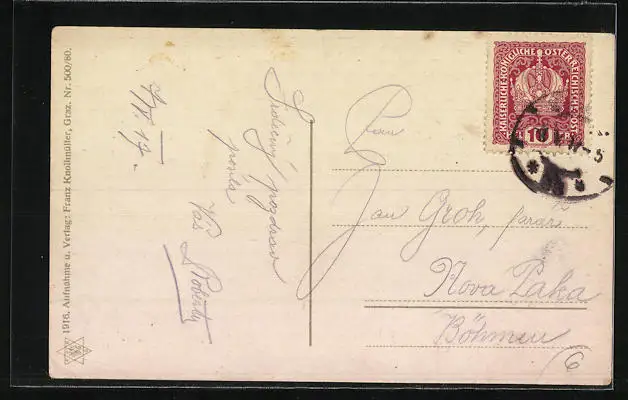 alte Ansichtskarte, gelaufen 1917, Oberflächenschaden, Stempelspur, guter Zustand