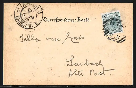 alte Ansichtskarte, gelaufen 1900, guter Zustand