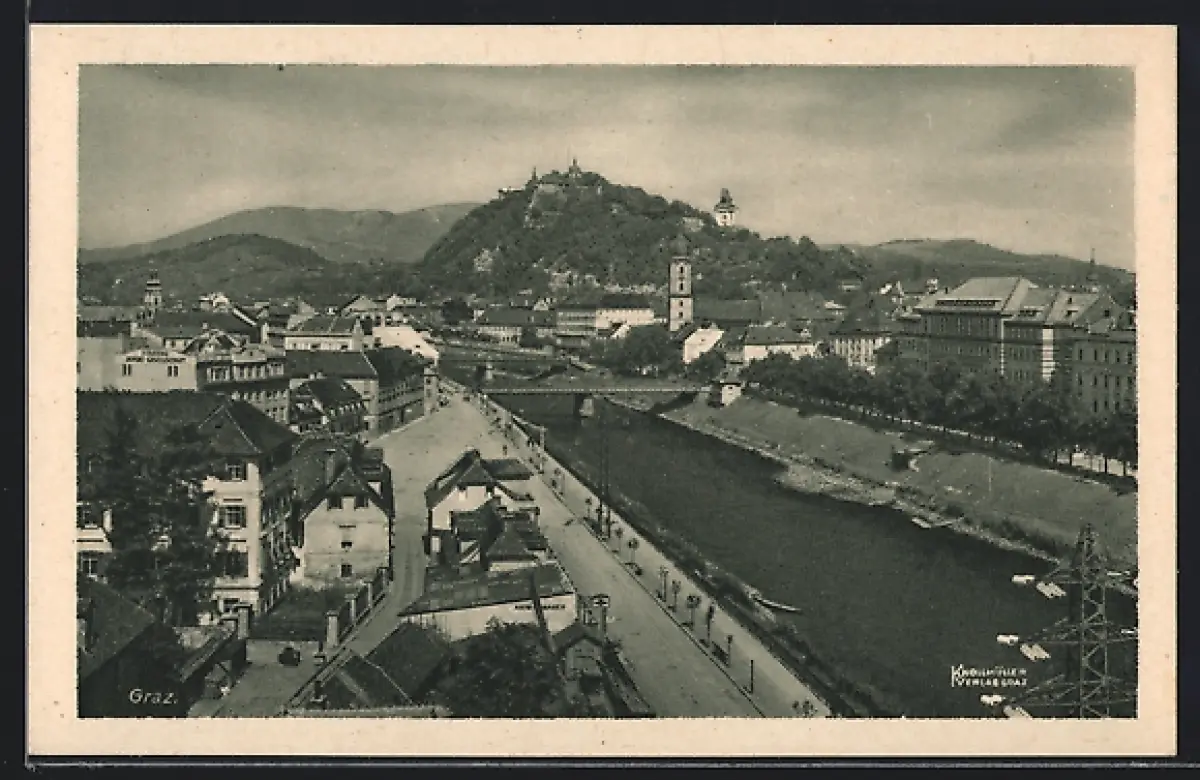 AK Graz, Ortsansicht mit Brücken über die Mur