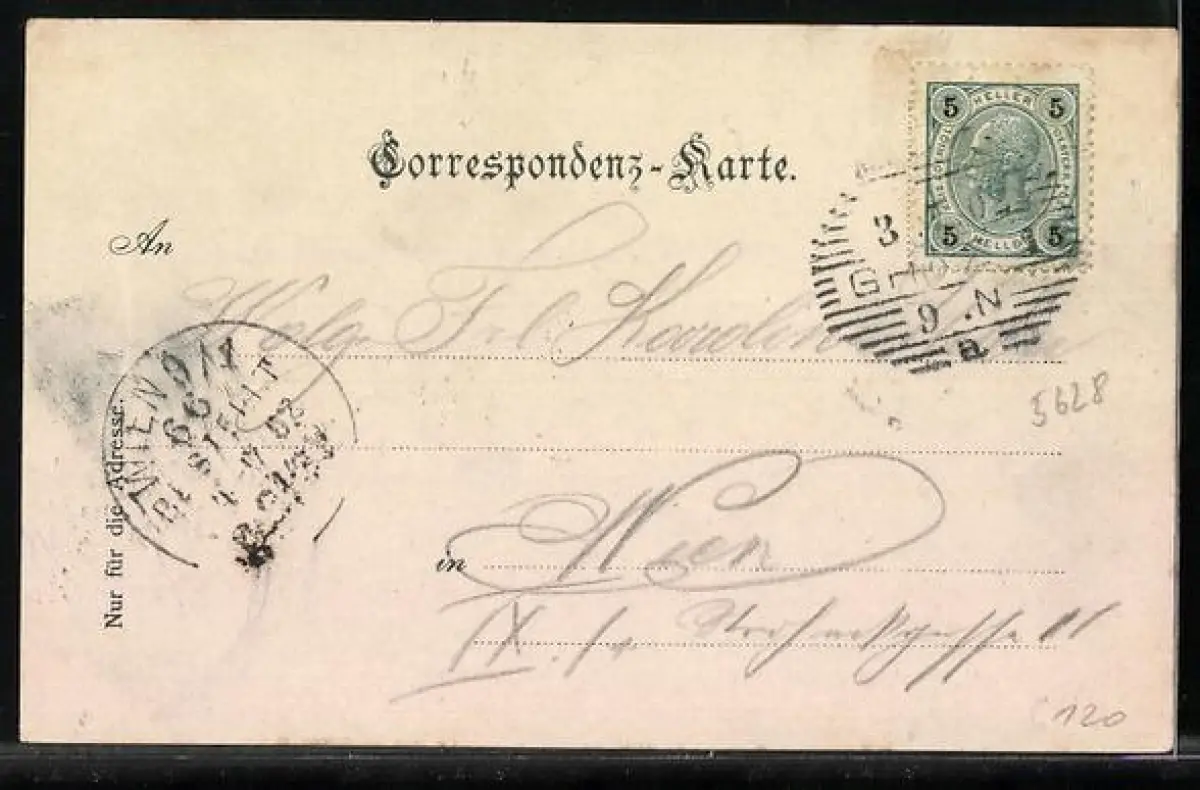 alte Ansichtskarte, gelaufen 1899, Stempelspur, guter Zustand