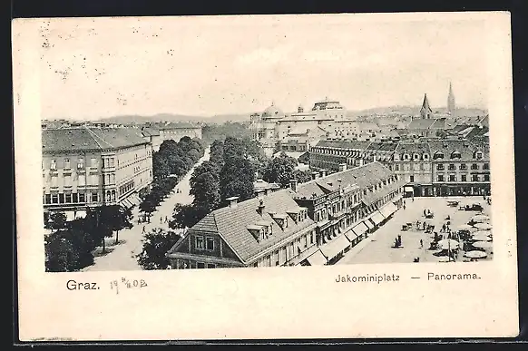 AK Graz, Panoramablick mit dem Jacominiplatz