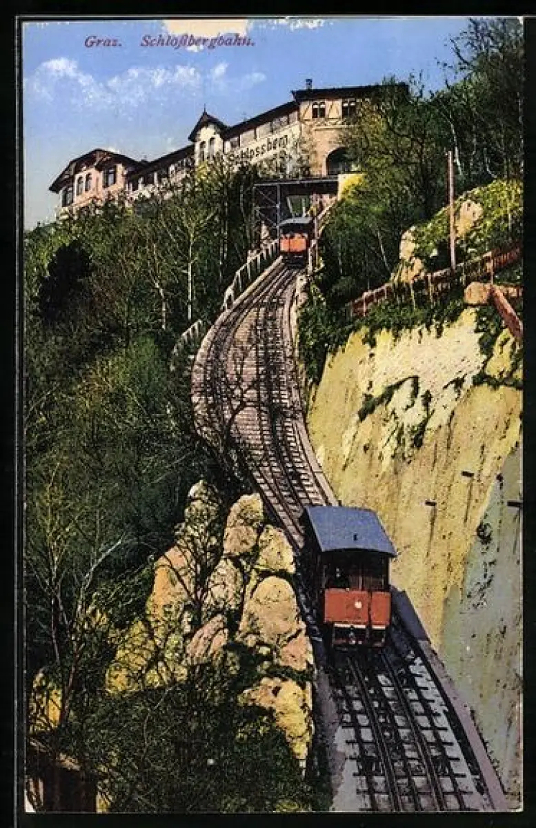 AK Graz, Schlossbergbahn und Restaurant Schlossberg