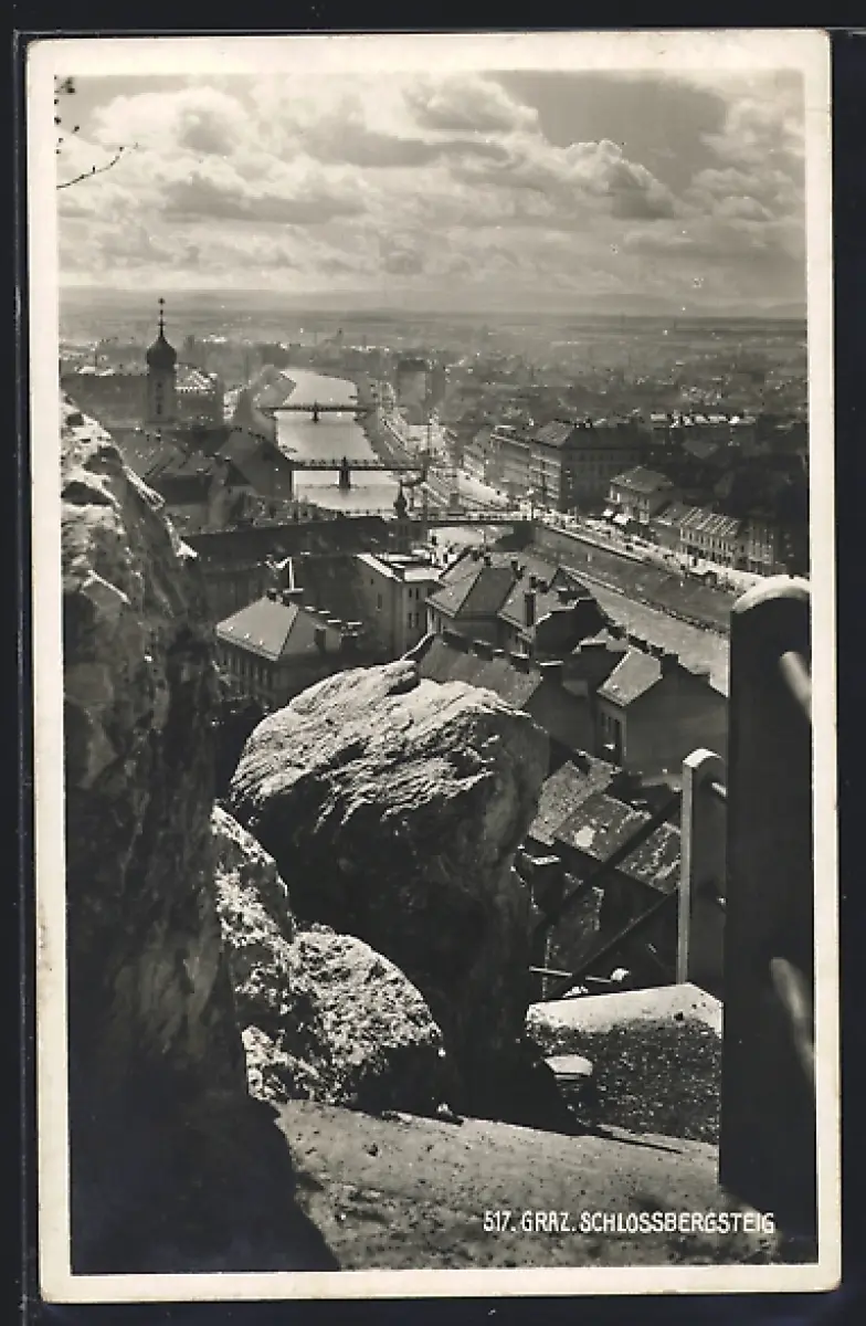AK Graz, Schlossbergsteig mit Flusspartie