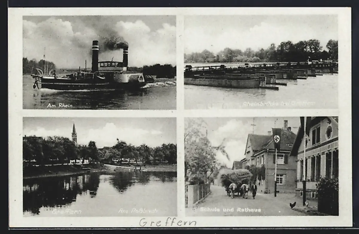 AK Greffern, Rheinbrücke, Schule und Rathaus