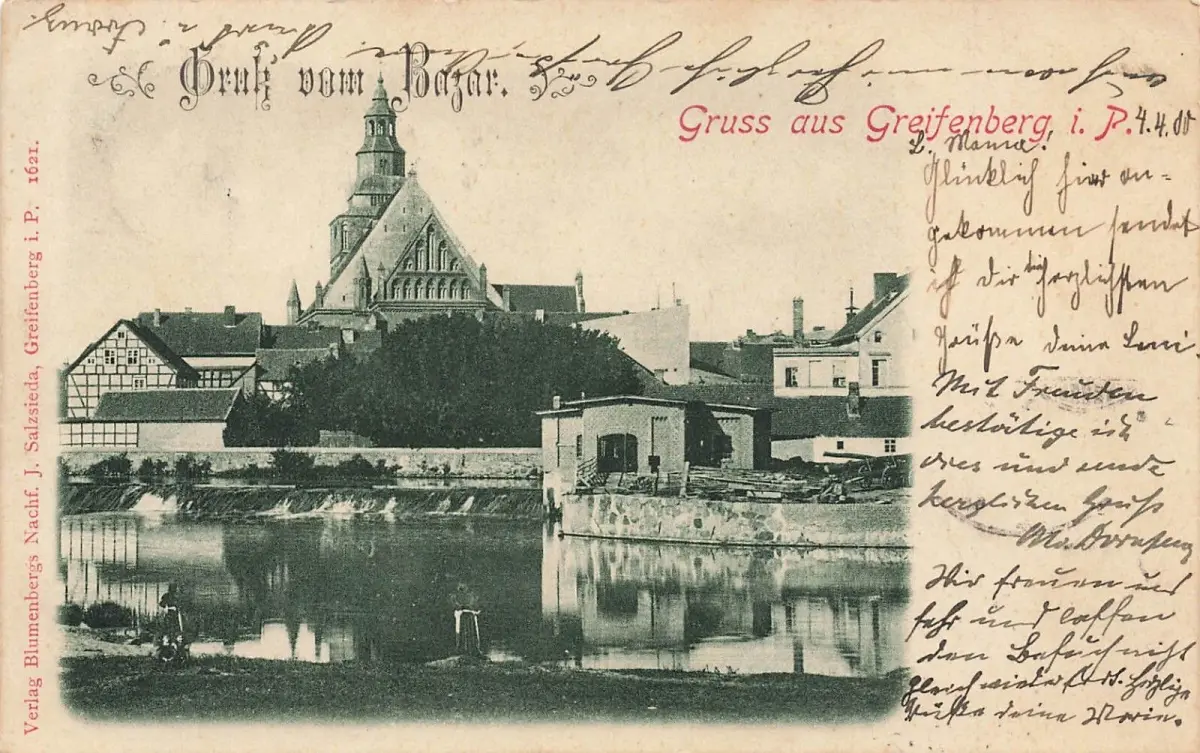 AK Greifenberg Kirche Bazar Pommern 1900 gelaufen Postkarte