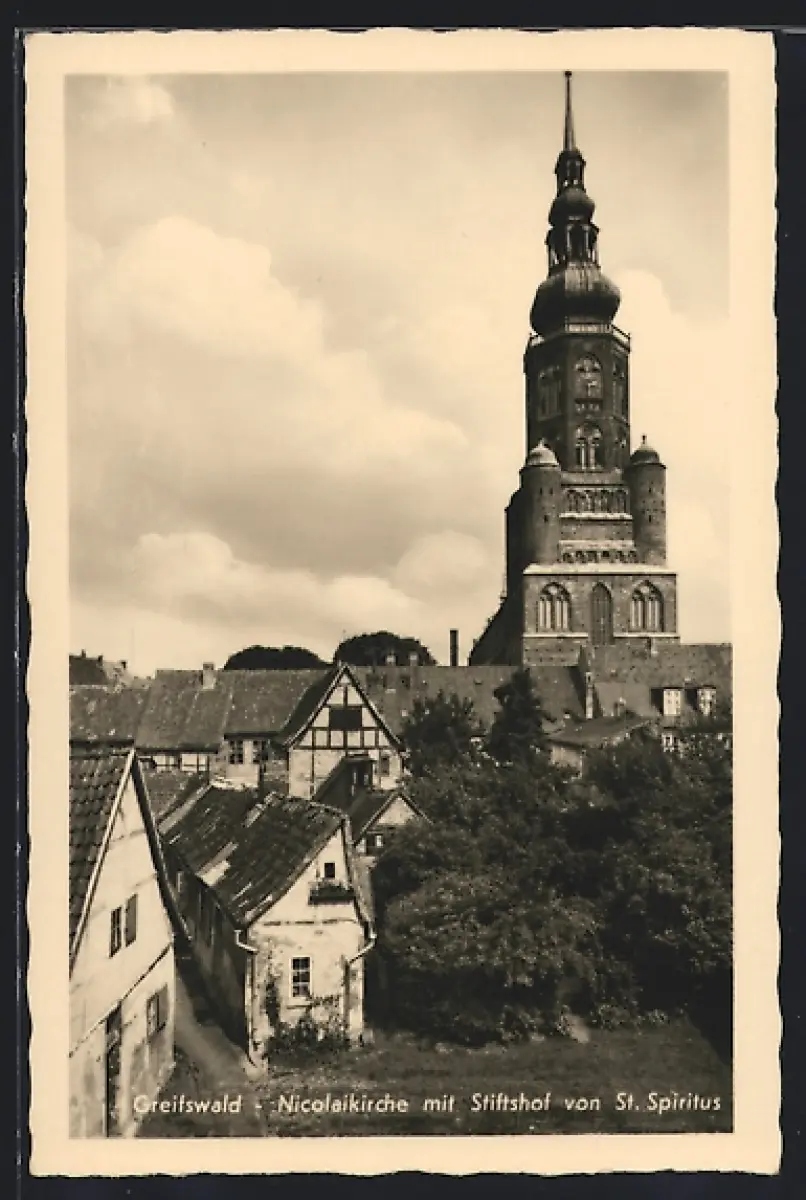AK Greifswald, Nicolaikirche mit Stiftshof von St. Spiritus
