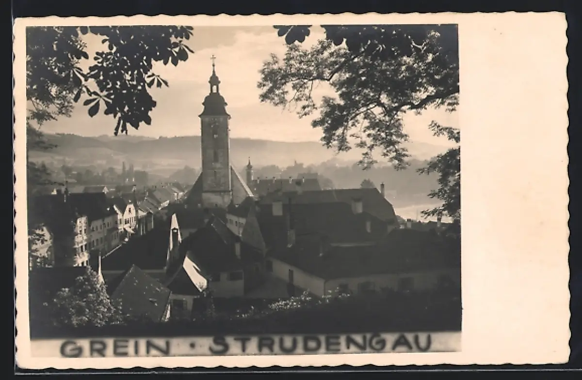 AK Grein an der Donau, Ortsansicht mit Kirche