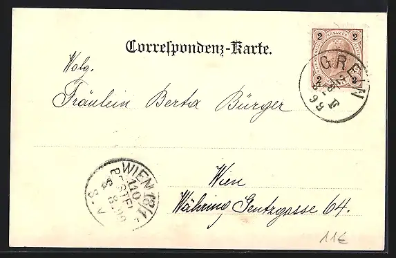 alte Ansichtskarte, gelaufen 1899, Stempelspur, guter Zustand