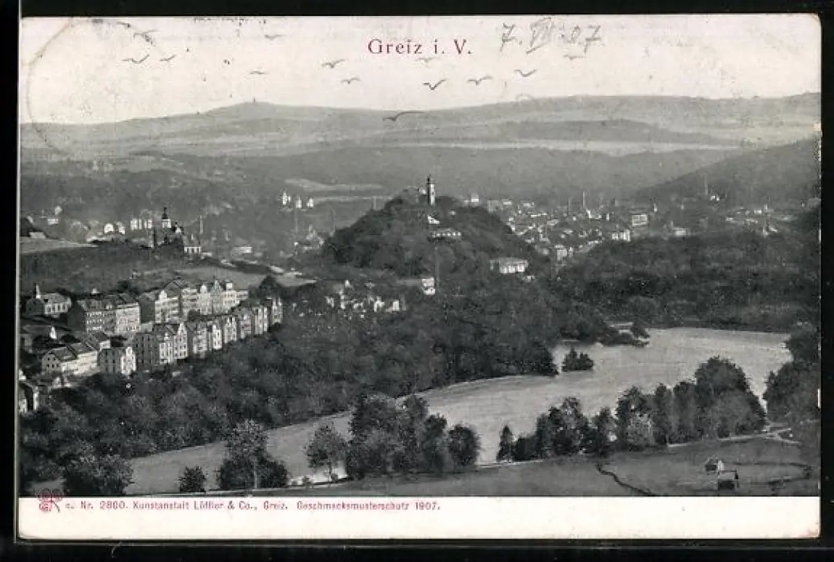 AK Greiz i. V., Ortsansicht aus der Vogelschau