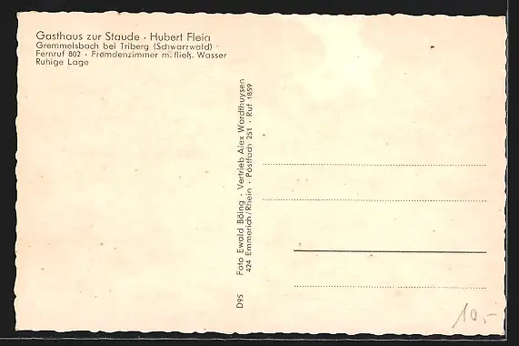 AK Gremmelsbach bei Triberg, Gasthaus zur Staude, Inh. Hubert Fleig