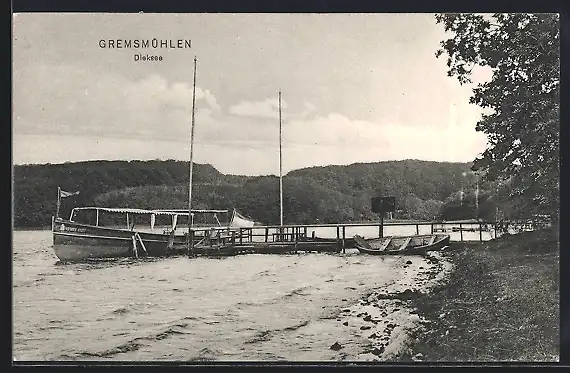 AK Gremsmühlen, Passagierboot Friedrich August am Anleger am Dieksee