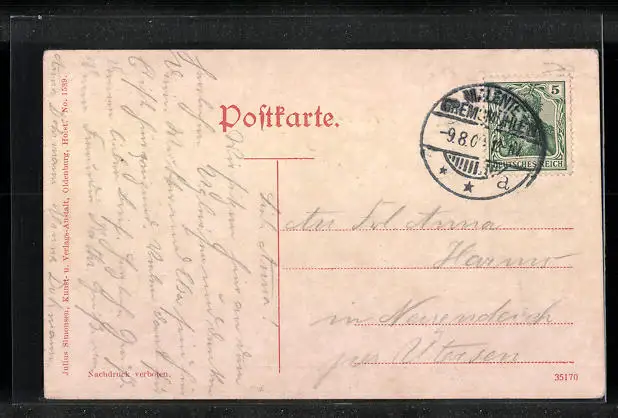 alte Ansichtskarte, gelaufen, Eckknick oben re., guter Zustand