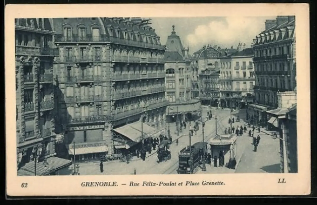 AK Grenoble, Rie Félix-Poulat et Place Grenette, Strassenbahn