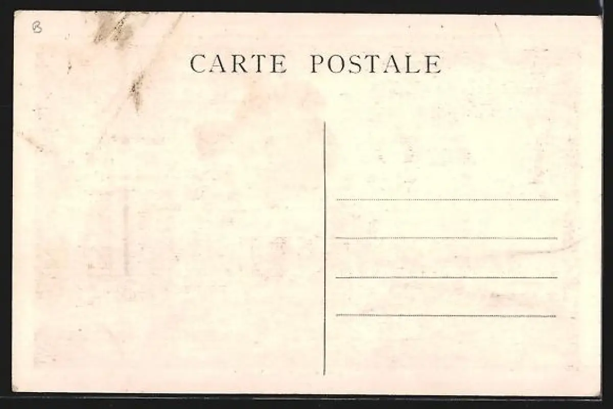 Personenbezogene Daten auf der Rückseite der Karte wurden durch blauen Textmarker unkenntlich gemacht. Die blauen Stellen sind auf die Vorderseite durchgeweicht und wirken sich negativ auf das Postkartenfoto aus