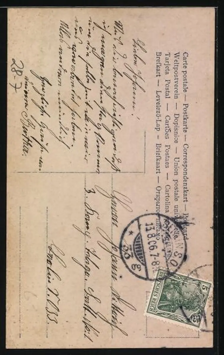 alte Ansichtskarte, gelaufen 1906, Eckknick re. unten, guter Zustand