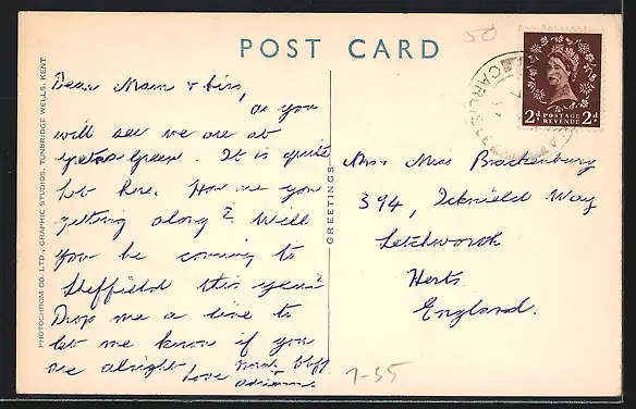 Personenbezogene Daten auf der Rückseite der Karte wurden durch blauen Textmarker unkenntlich gemacht. Die blauen Stellen sind auf die Vorderseite durchgeweicht und wirken sich negativ auf das Postkartenfoto aus