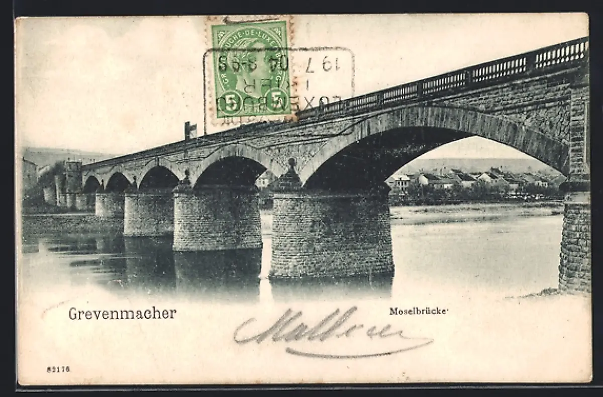 AK Grevenmacher, Moselbrücke mit Ortsblick