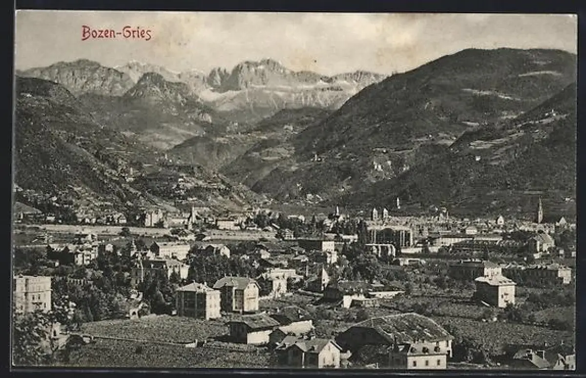 AK Gries-Bozen, Stadtansicht mit dem Rosengarten