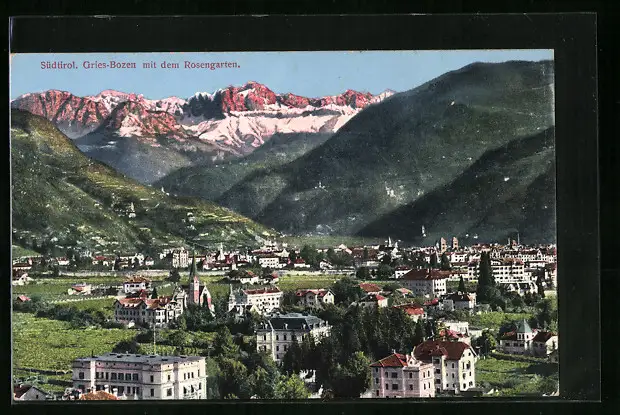 AK Gries-Bozen, Totalansicht mit dem Rosengarten